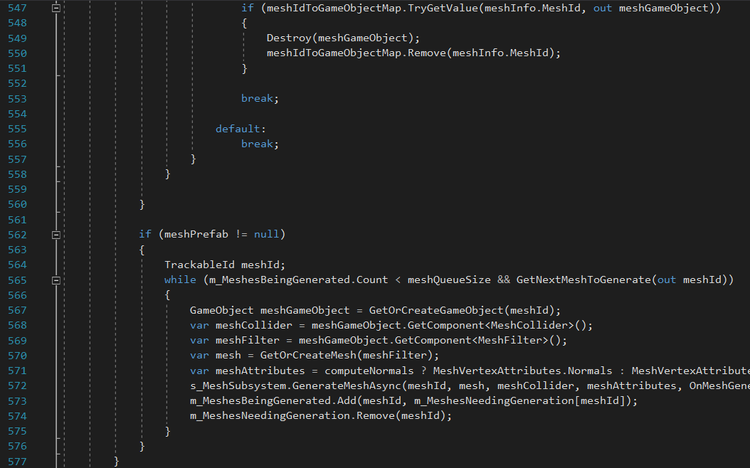 In order for this to work though, you need the “WorldReconstruction” privilege under the Player Settings. So when you try the MLSpatialMapper you’ll see a bunch of little triangles which is the basic geometry of how ML1 gets environmental information, which looks like this: